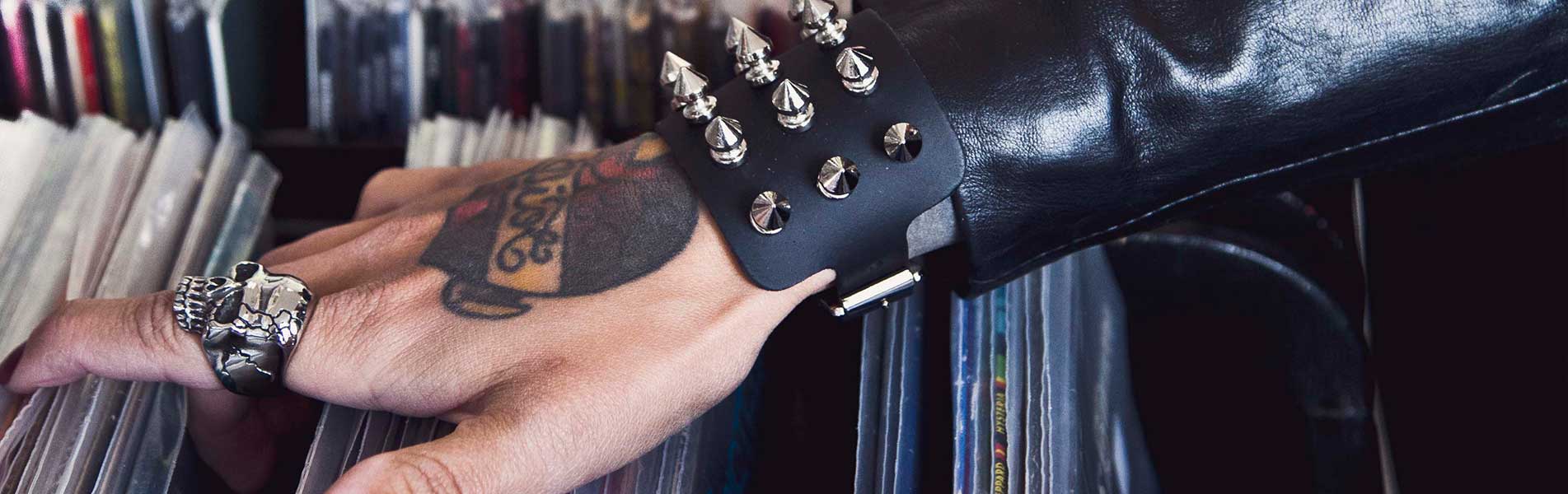 På Shock hittar du ett stort sortiment av läderarmband & nitarmband! Vi har flera läderarmband med olika bredd, allt från en rad till elva rader!