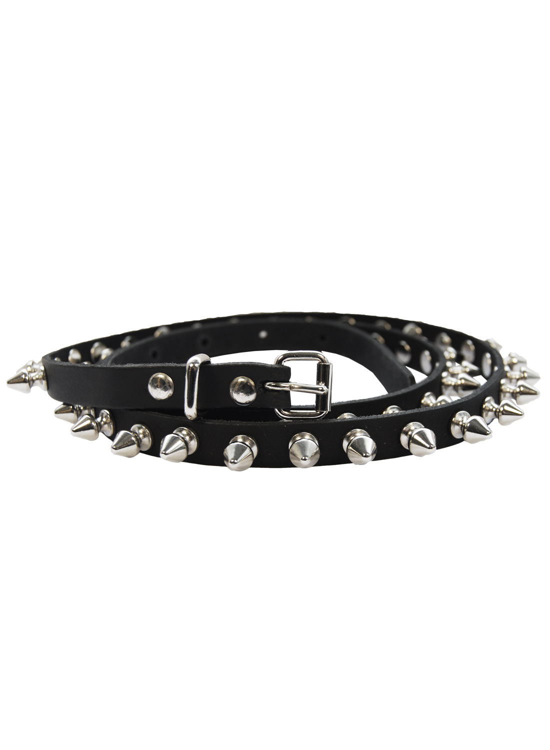 1 Row Spike Studbelt Black är ett 1- radigt kon-nitbälte i äkta läder . Bredd: 1,2 cm. Detta svarta nitbälte kommer från Randomizer och tillverkas i England.