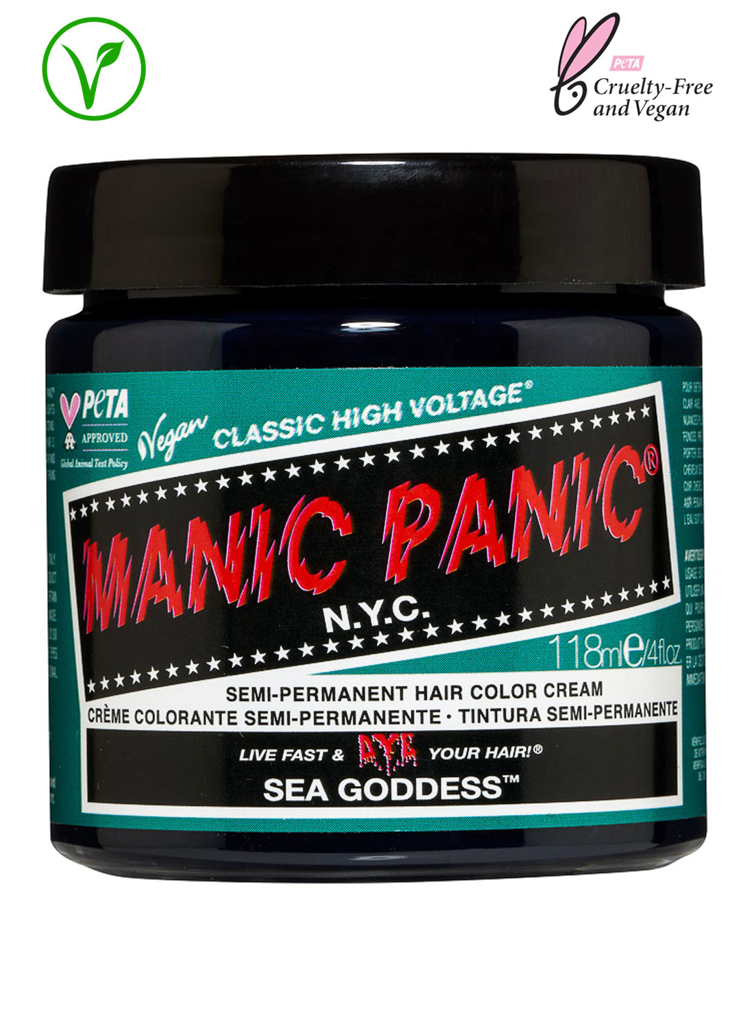 Manic Panic’s Classic Sea Goodess är en semi-permanent hårtoning, som ger en grön hårfärg.