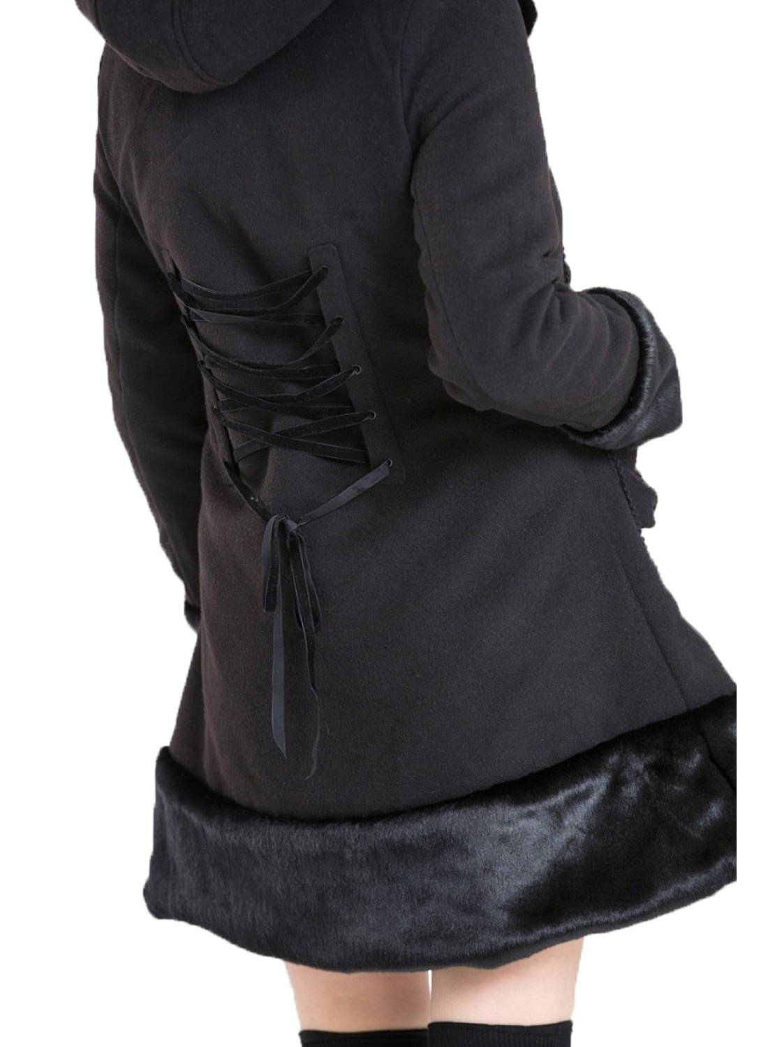 Hell Bunny Sera Jane Coat Black är den mysigaste kappan du kan hitta med vacker fuskpäls, dubbelknäppning framtill och korsettsnörning baktill. Modellen kommer såklart från Hell Bunny!