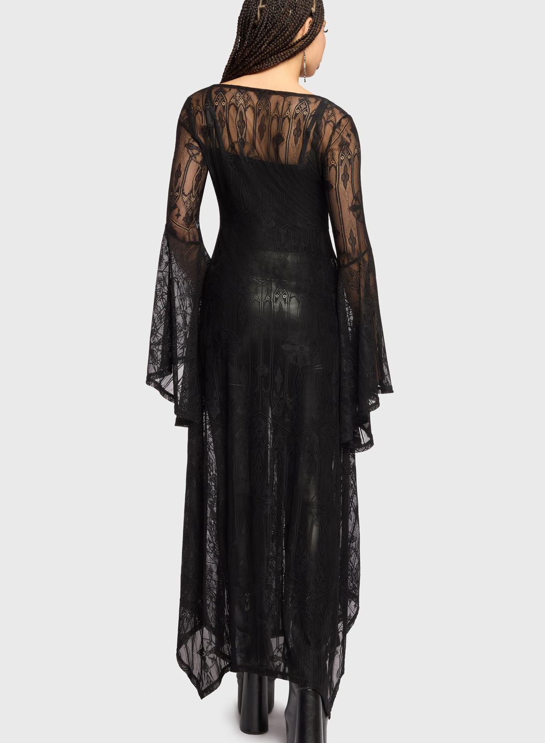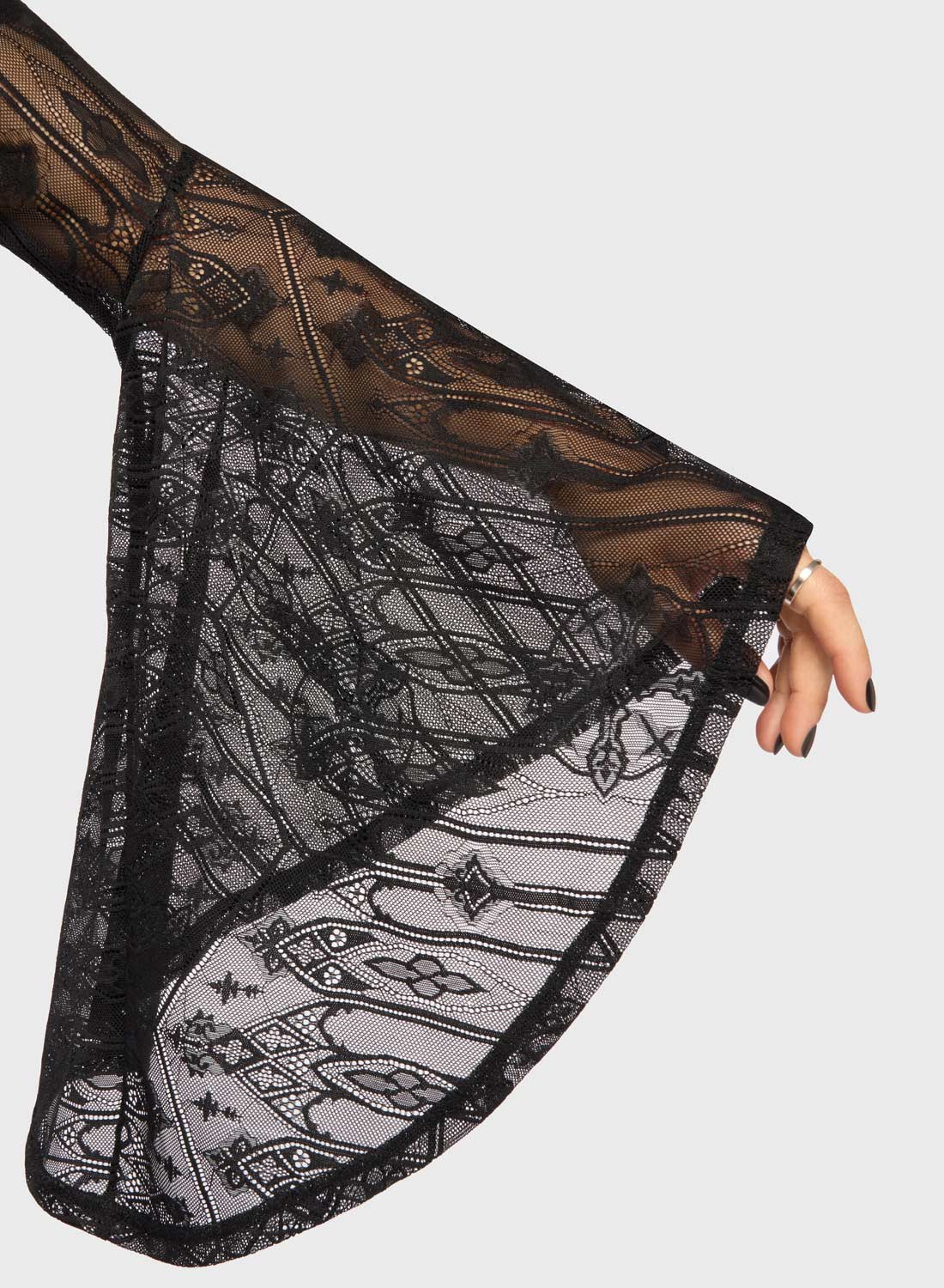 Killstar Shadow Queen Duster – cathedral lace dress coat in dramatic goth style