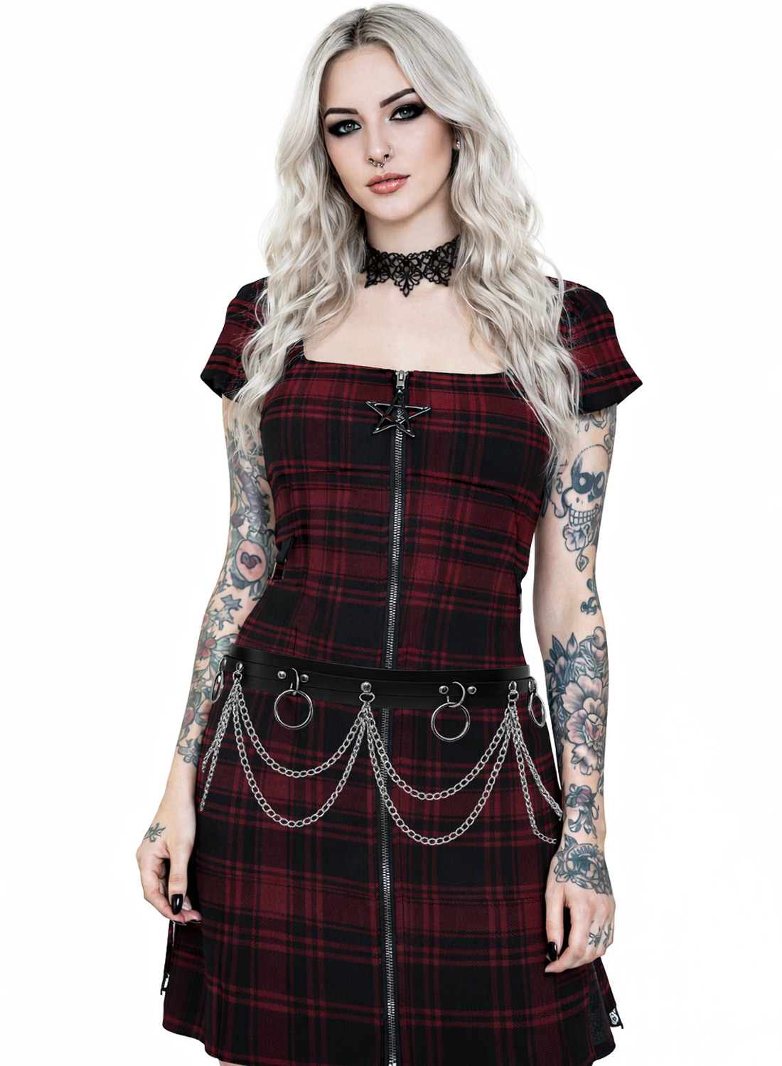 The draped chains create a nice layered effect that adds movement and visual depth to the belt. This type of accessory has long been an important part of the alternative fashion scene and is often seen in both punk and rock culture.