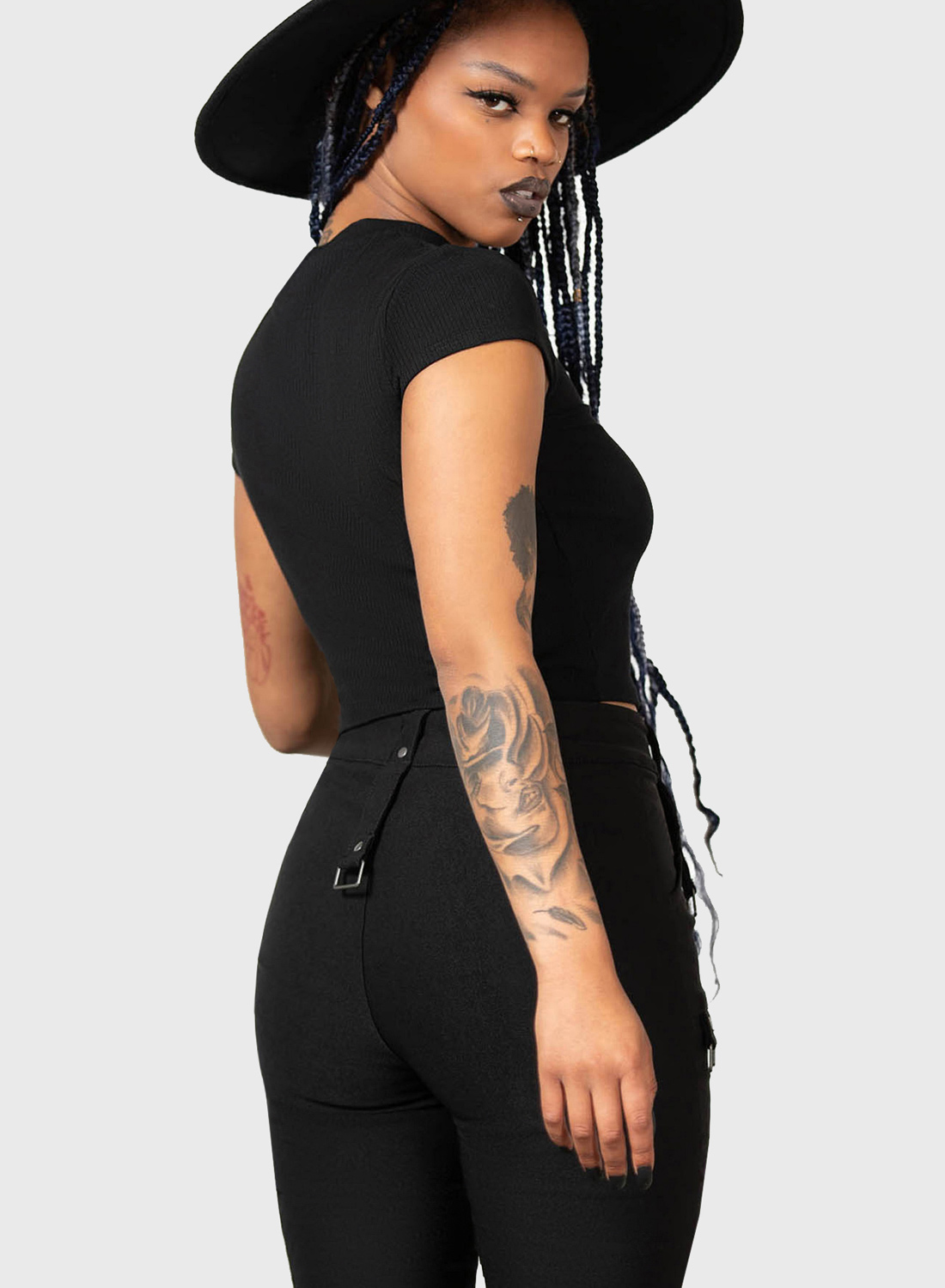 Tartanarchist Trousers Black är supermjuka och stretchiga punk, rock, gotiska byxor från Killstar.